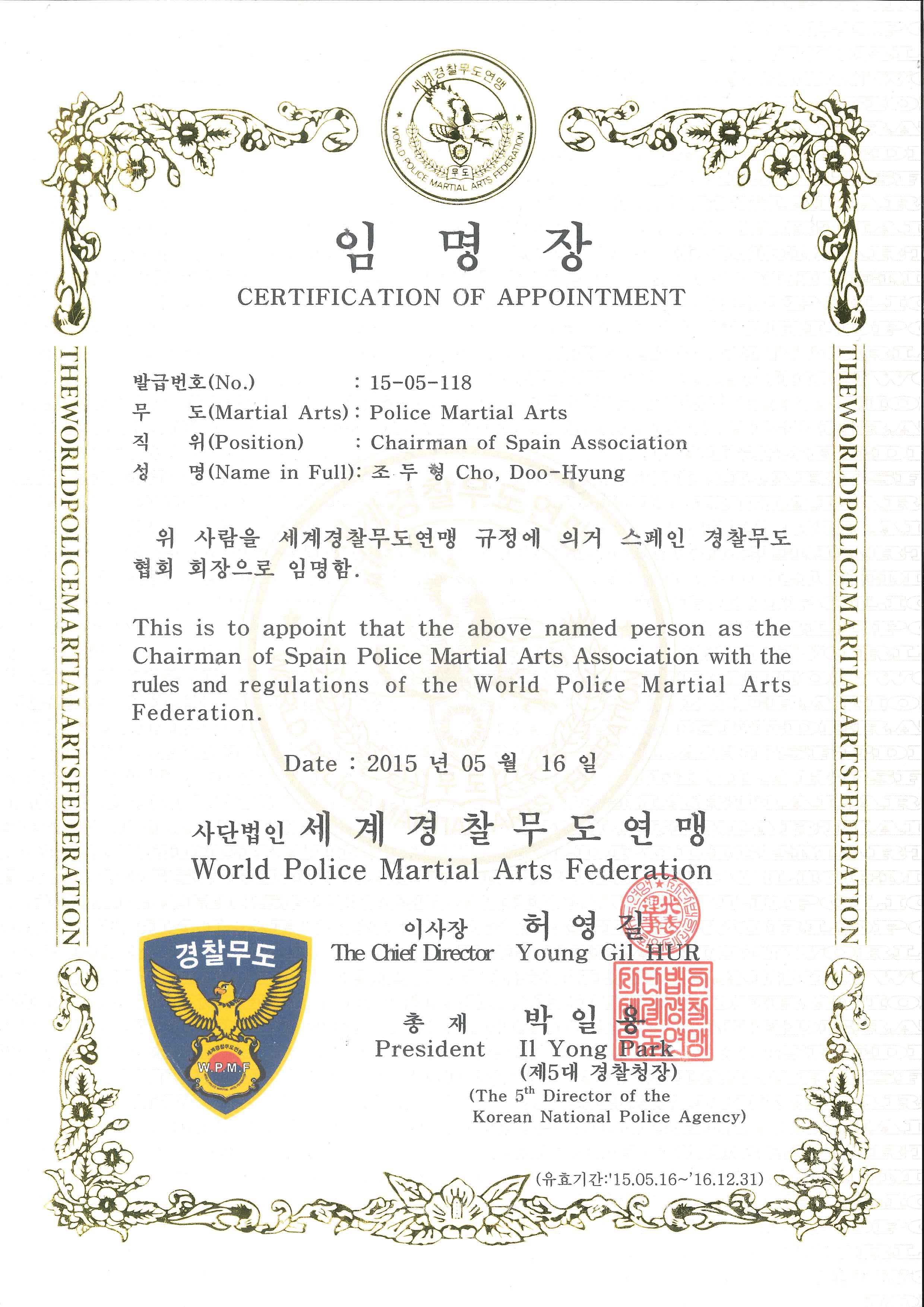 NOMBRAMIENTOS de la WORLD POLICE MARTIAL ARTS FEDERATION