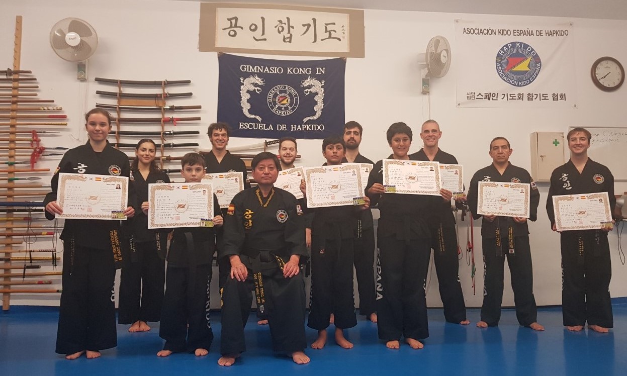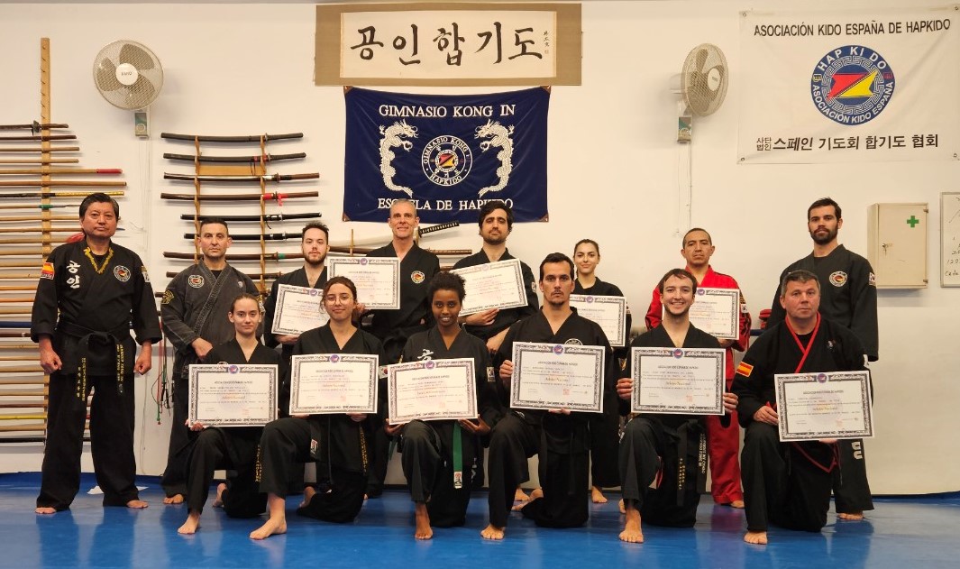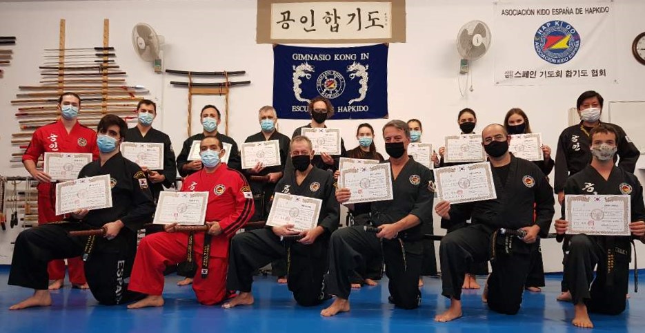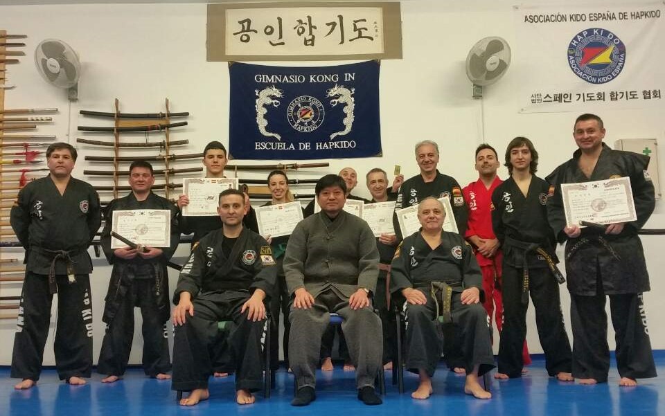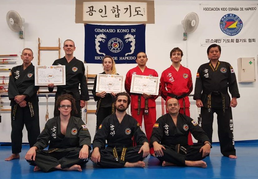 El objetivo del curso, era adquirir los conocimientos y las habilidades necesarias, para dirigir diferentes tipos de competiciones y especialmente, el arbitraje de combates.Alumnos de la Asociación Kido España de Hapkido, después de la entrega de diplomas, junto al GM CHO