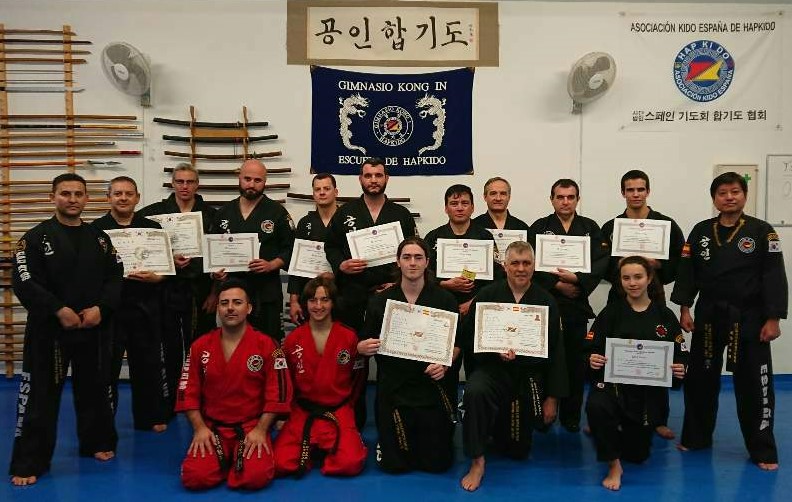 El objetivo del curso fue adquirir los conocimientos y las habilidades necesarias, para dirigir diferentes tipos de competiciones y especialmente, el arbitraje de combate.Alumnos de la Asociación Kido España de Hapkido, después de la entrega de diplomas, junto al GM CHO