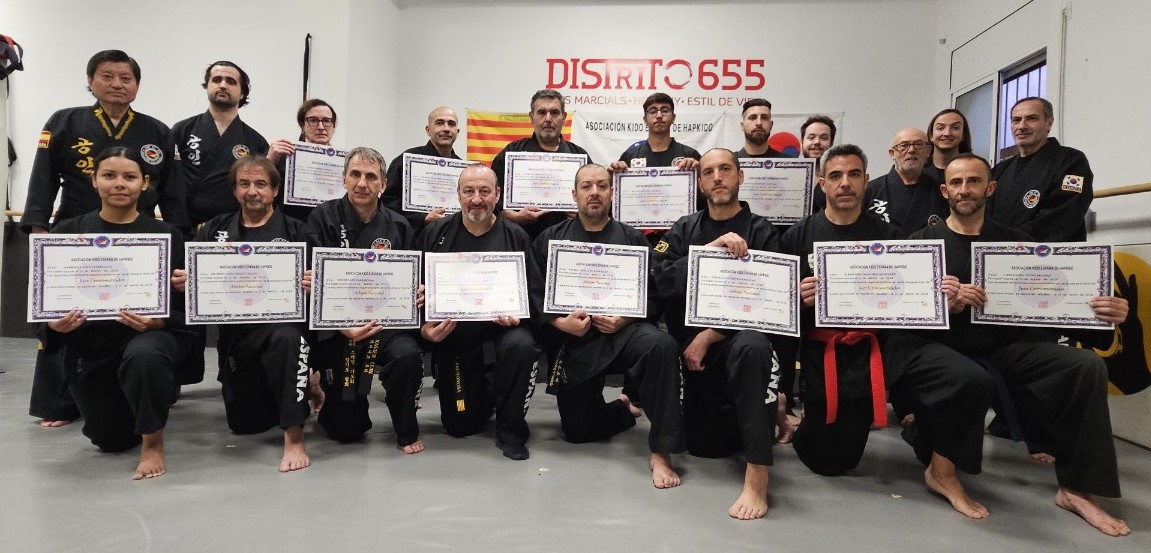 El objetivo del curso, era adquirir los conocimientos y las habilidades necesarias, para dirigir diferentes tipos de competiciones y especialmente, el arbitraje de combates.Alumnos de la Asociación Kido España de Hapkido, con sus diplomas, junto al GM CHO y el Maestro Jacques Carbonell