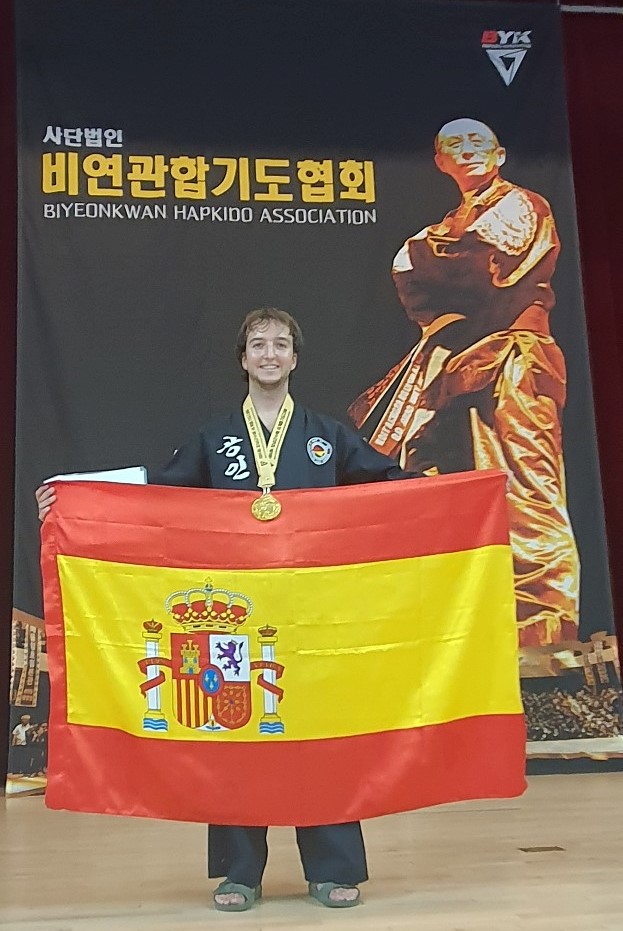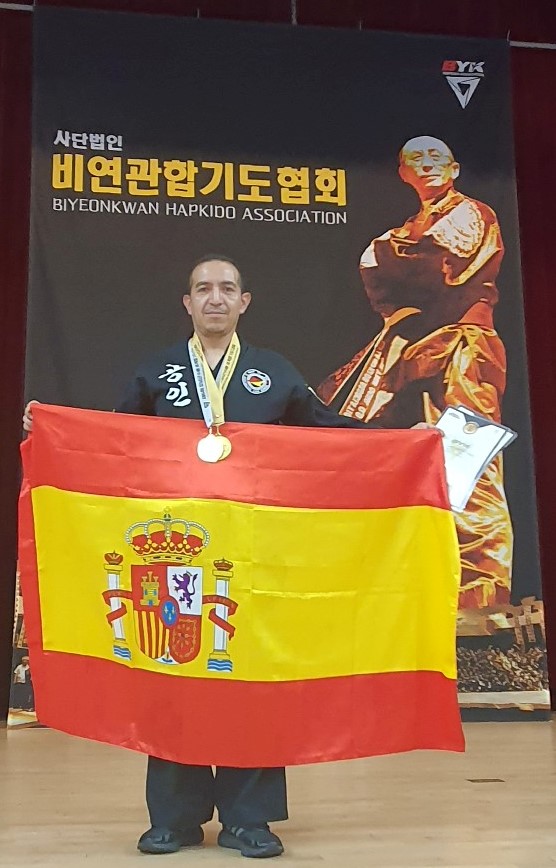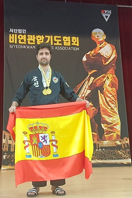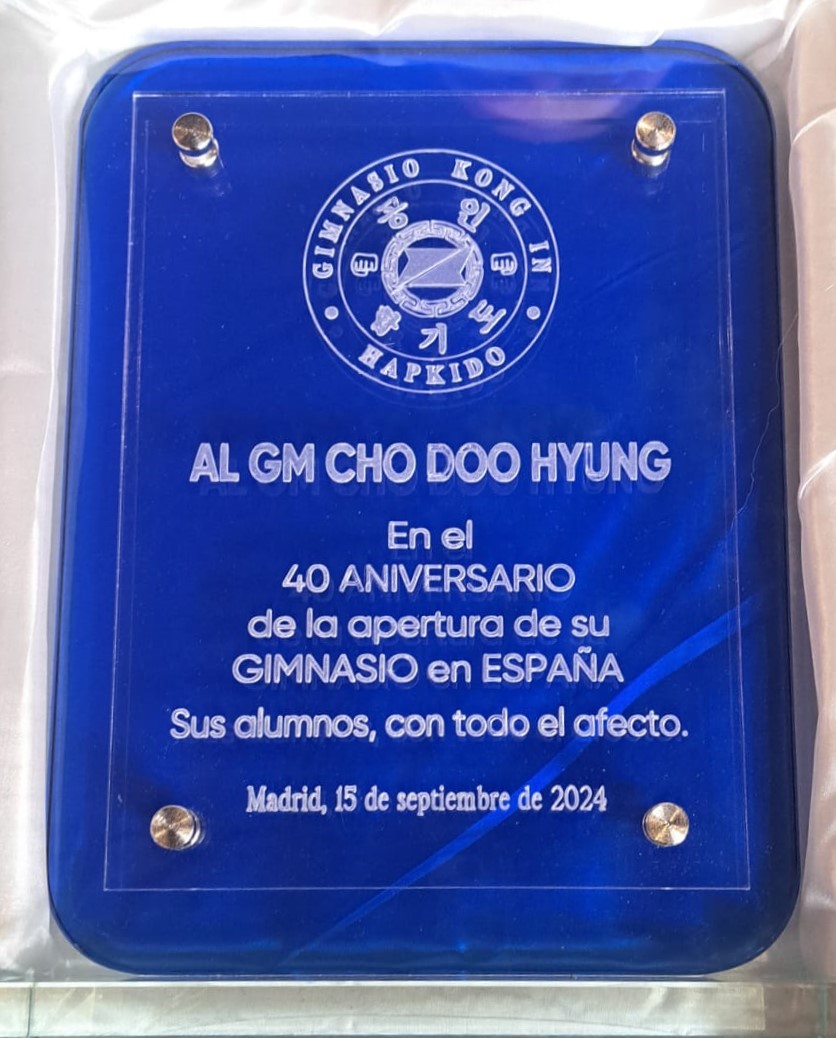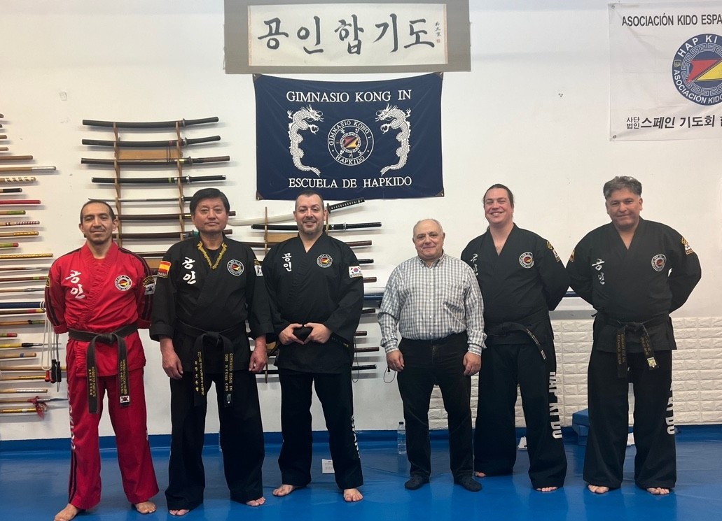 La foto corresponde al acto de clausura del seminario, junto al: Dr. Heung Jin Lee, Jefe del departamento de Protección y Seguridad, y Presidente de la Asociación "Unión General de Hapkido de Corea"; y al Gran Maestro Doo Hyung Cho, Presidente de la Asociación Kido España de Hapkido (Kidohae).