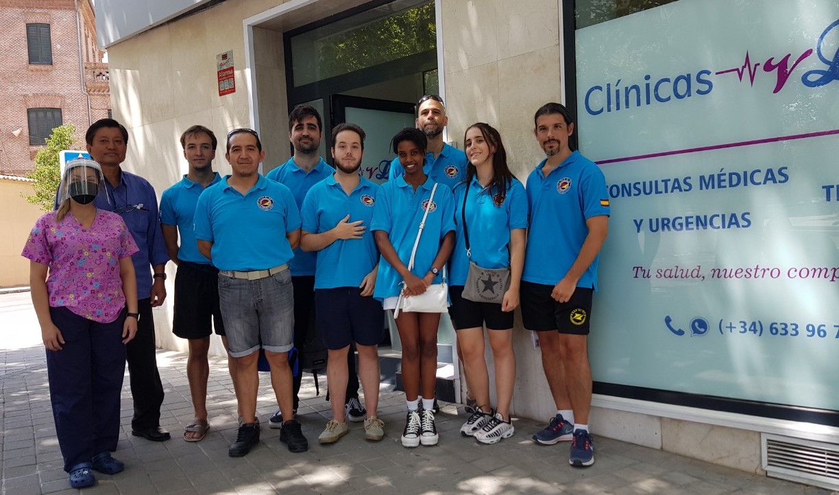 El EQUIPO ESPAÑOL a la puerta de la Clínica, después de las pruebas
