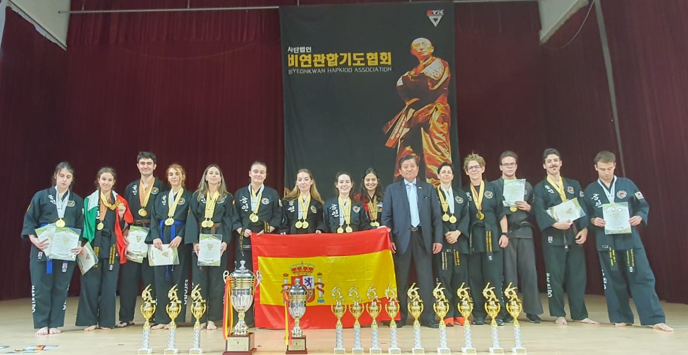 Habiendo obtenido el palmarés siguiente:El equipo español, de nuestro Gimnasio, con los trofeos conseguidos junto al GM DOO HYUNG CHO