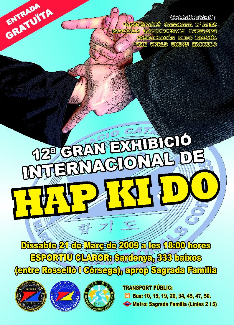 El pasado día 21 de Marzo de 2009 tuvo lugar la XII Gran Exhibición Internacional de Hapkido en Barcelona, organizada por la Asociación Kido España.